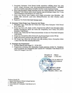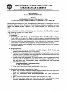 Melalui surat ini, Pemda Teluk Bintuni dalam hal ini Panitia Pelaksana HUT ke-20 memberikan kesempatan bagi siapa saja untuk mengirimkan karya terbaiknya. Tentunya, wajib mengikuti syarat dan ketentuan yang diatur.