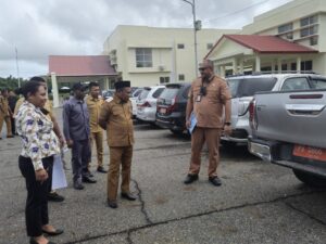 Kedatangan Wabup Joko Lingara untuk melihat langsung kondisi kendaraan dinas milik Pemerintah Kabupaten Teluk Bintuni yang ditertibkan pihak kejaksaan.