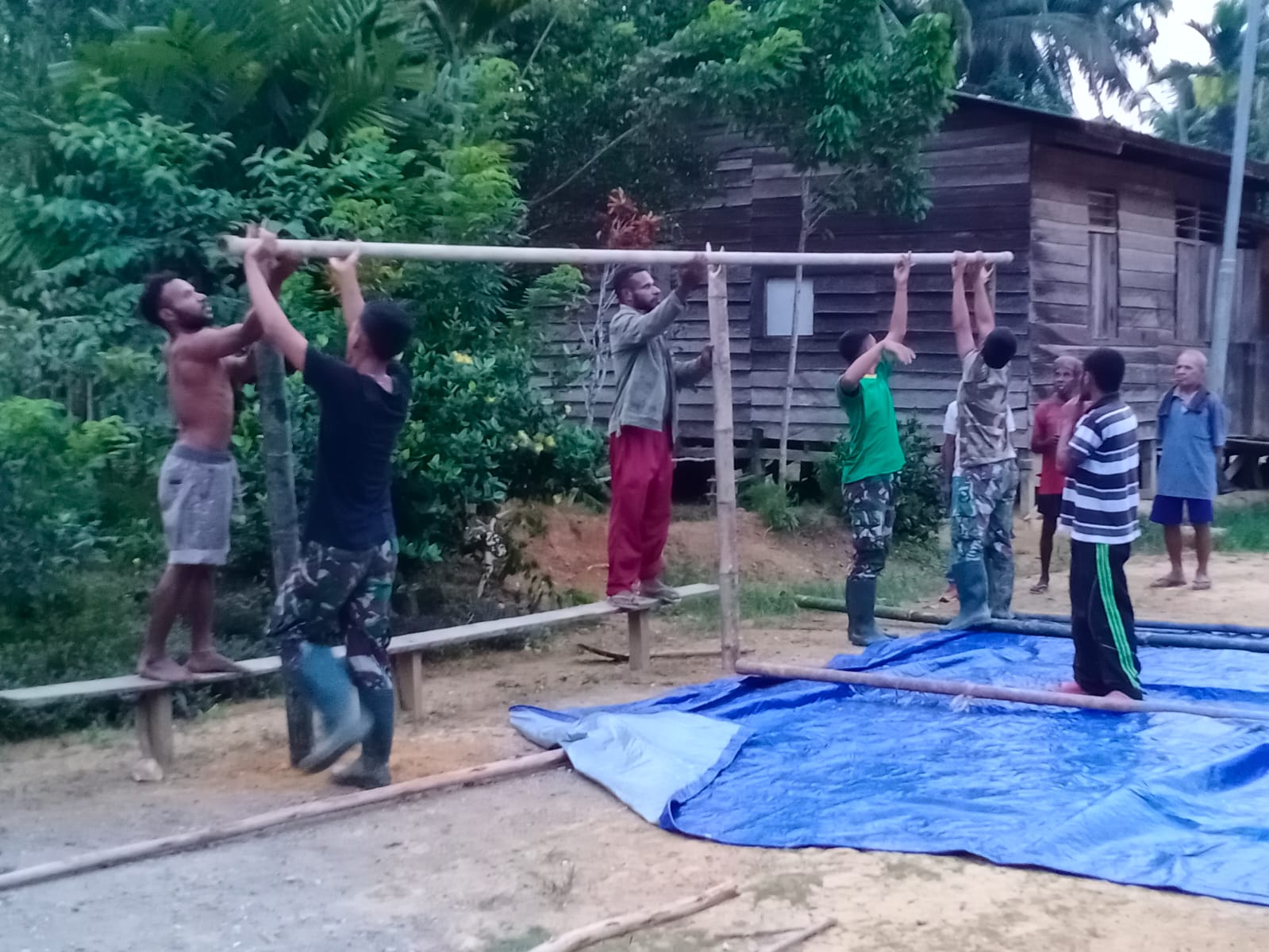 Saat tiba ditempat duka anggota dari Satgas Yonif 143/TWEJ tanpa ragu membaur bersama rakyat dalam rangka membantu kelancaran proses pemakaman mulai penyiapan bahan sampai dengan mendirikan tenda di rumah duka.