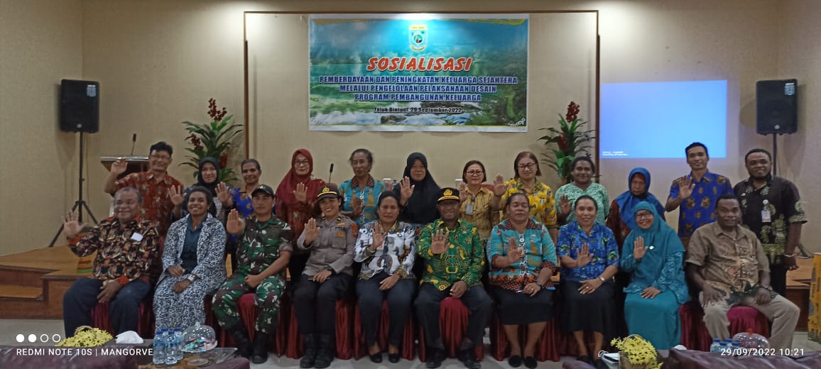 Mangrove.id| Dinas Administrasi Kependudukan Pencatatan Sipil Pengendalian Penduduk dan Keluarga Berencana Provinsi Papua Barat menggelar sosialisasi pemberdayaan dan peningkatan keluarga sejahtera melalui pengelolaan pelaksanaan desain program pembangunan keluarga di Kabupaten Teluk Bintuni, Kamis(29/9/2022).