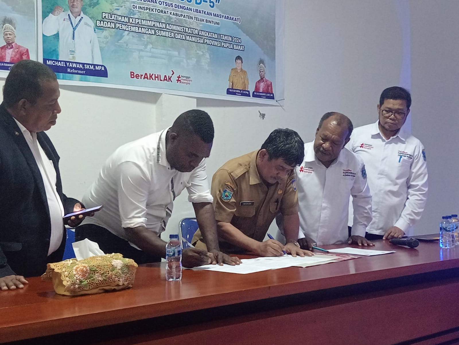Bertempat di kantor Inspektorat, Senin (20/8/2024), Agustinus Orosomna selaku Ketua Forapelo dan Inspektur Kabupaten Teluk Bintuni, I Wayan Sidia menandatangani naskah kerja sama tersebut.