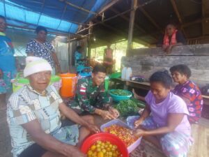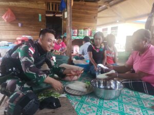 Setibanya dilokasi dengan sigap para serdadu TNI segera membantu kesuksesan perhelatan tersebut, baik membantu dalam hal pengamanan acara dan membantu mama-mama memasak siapkan hidangan di Dapur.