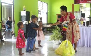 Prosesi penyerahan hadiah-hadiah dilaksanakan usai ibadah Paskah ke-2, Senin (18/4/2022) yang diserahkan oleh Ketua Jemaat GKI Gilgal Atibo, Pdt. Ivone Bawole, S.Th, Kepala Kampung Atibo, Simeon Iba, serta para Pelayan Unsur dalam Jemaat.