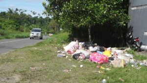 Tidak hanya kondisi sampah di dalam pasar, ternyata di sejumlah titik pada sebagian bahu jalan di kota Bintuni, banyak sampah terlihat menumpuk. (Wanma)
