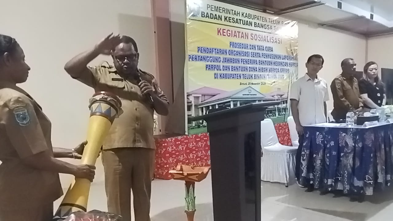 BINTUNI, mangrove.id| Pemerintah Kabupaten Teluk Bintuni melalui Badan Kesatuan Bangsa dan Politik (Kesbangpol) memberikan sosialisasi kepada Organisasi Masyarakat (Ormas) dan Partai Politik (Parpol) di daerah ini.