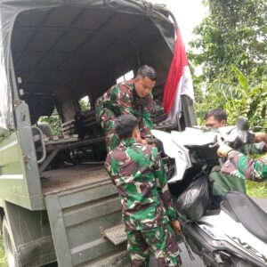 “Setelah mendapat pertolongan dan kendaraan Korban tidak dapat lagi dikendarai karena mengalami pecah ban bagian roda depan, maka diputuskan untuk mengantar korban ke rumahnya didaerah Koya Timur,” imbuh Letda Ckm dr. Made Banupati dokter Satgas.