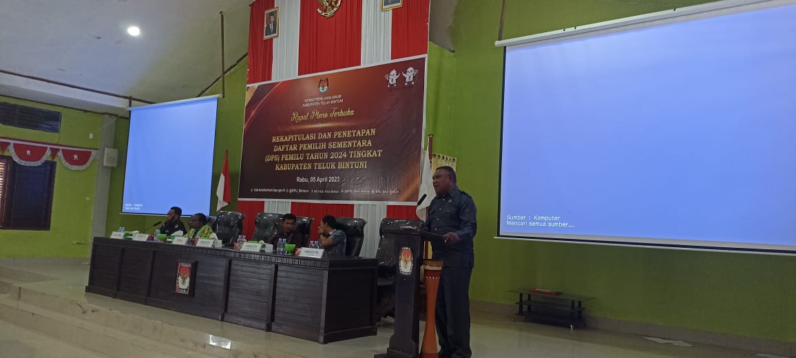 Mangrove.id | Komisi Pemilihan Umum (KPU) Teluk Bintuni menggelar rapat pleno terbuka rekapitulasi dan penetapan daftar pemilih sementara (DPS) Pemilu tahun 2024 tingkat Kabupaten Teluk Bintuni, Rabu (5/4/2023).