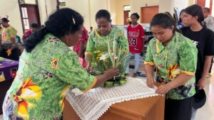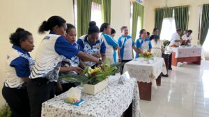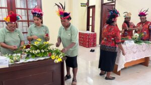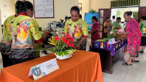 TELUK BINTUNI, mangrove.id| Persekutuan Wanita (PW) dari jemaat-jemaat se lingkungan 1 Klasis GKI Teluk Bintuni mengikuti lomba merangkai bunga hidup dalam rangka menyongsong HUT ke-100 Klasis GKI Teluk Bintuni.