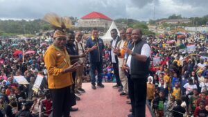 MAYBRAT, Mangrove.id| Ketua DPW Partai Nasdem Papua Barat Daya, Petrus Kasihiw menghadiri kampanye akbar pasangan Calon Bupati dan Wakil Bupati Maybrat nomor urut 2, Agustinus Tenau – Marthen Howay.
