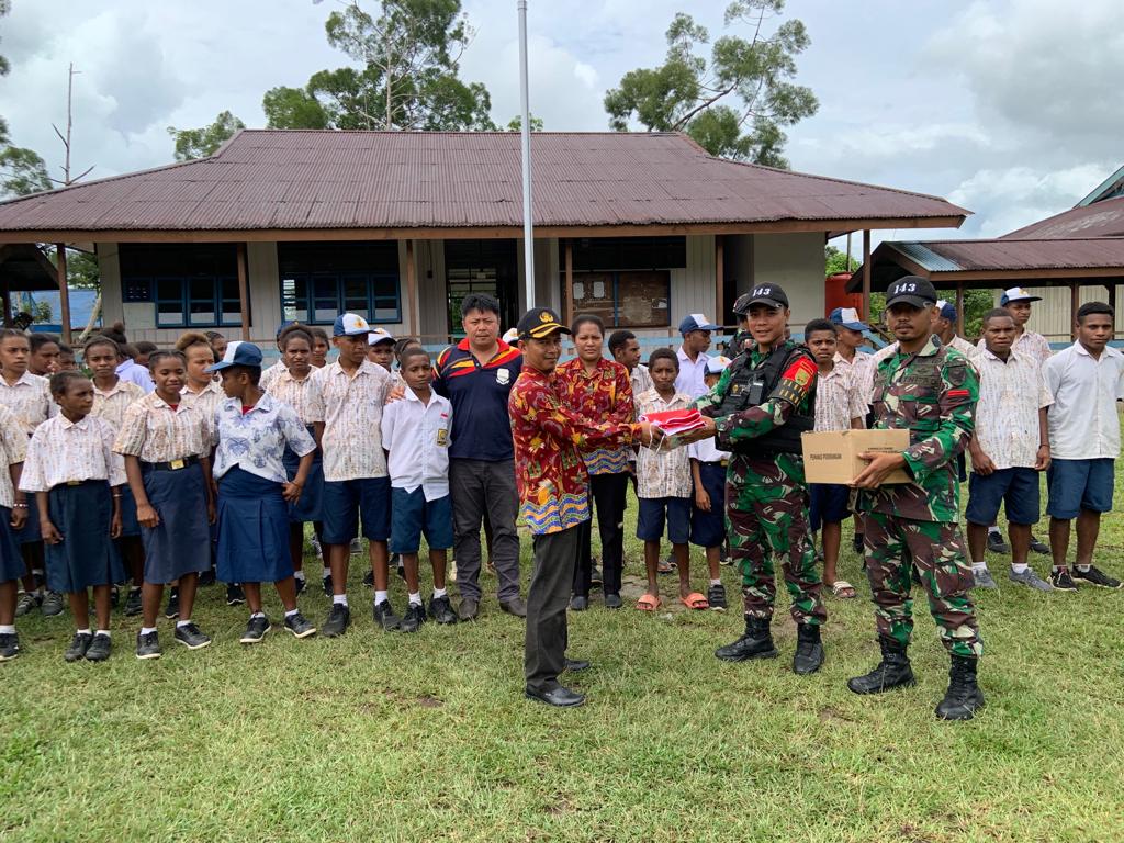 “Kami sangat bahagia dan berterima kasih kepada bapak TNI dari Pos Ubrub Yonif 143/TWEJ yang sudah meluangkan waktunya memberikan pembekalan kepada anak – anak kami disini, kami juga berterimakasih atas bantuan alat – alat tulis, alat olahraga, dan juga bendera merah putih.
