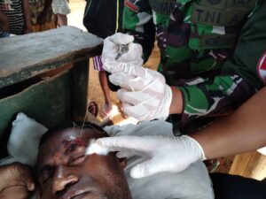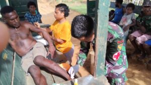 Mangrove.id| Personel Pos Somografi Satgas Pamtas RI-PNG Yonif 143/TWEJ dengan cepat memberikan pertolongan kepada bapak Joni ( 28 Tahun ) korban kecelakaan sepeda motor di Kampung Somografi, Distrik Web, Kabupaten Keerom, Papua, Minggu (27/11/2022).
