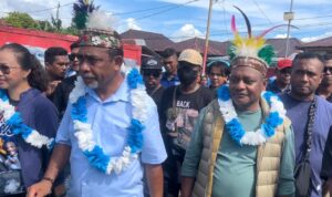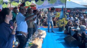 KOTA SORONG, Mangrove.id| Ribuan warga Pulau Doom, kota Sorong bereuforia menyambut pasangan Calon Gubernur dan Wakil Gubernur Papua Barat Daya nomor urut 1, Abdul Faris Umlati – Petrus Kasihiw.