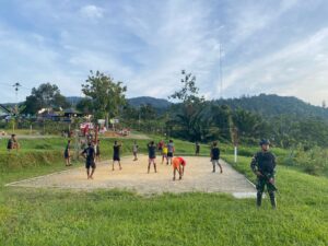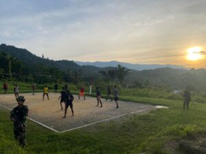 Mangrove.id| Satgas Yonif 143/TWEJ Pos Ubrub menjaga kebugaran sekaligus meningkatkan kebersamaan dengan masyarakat melalui olahraga Bola Voli bersama pemuda di kampung Amuaf, Distrik Web, Kabupaten Keerom, Provinsi Papua, Senin (31/10/2022).