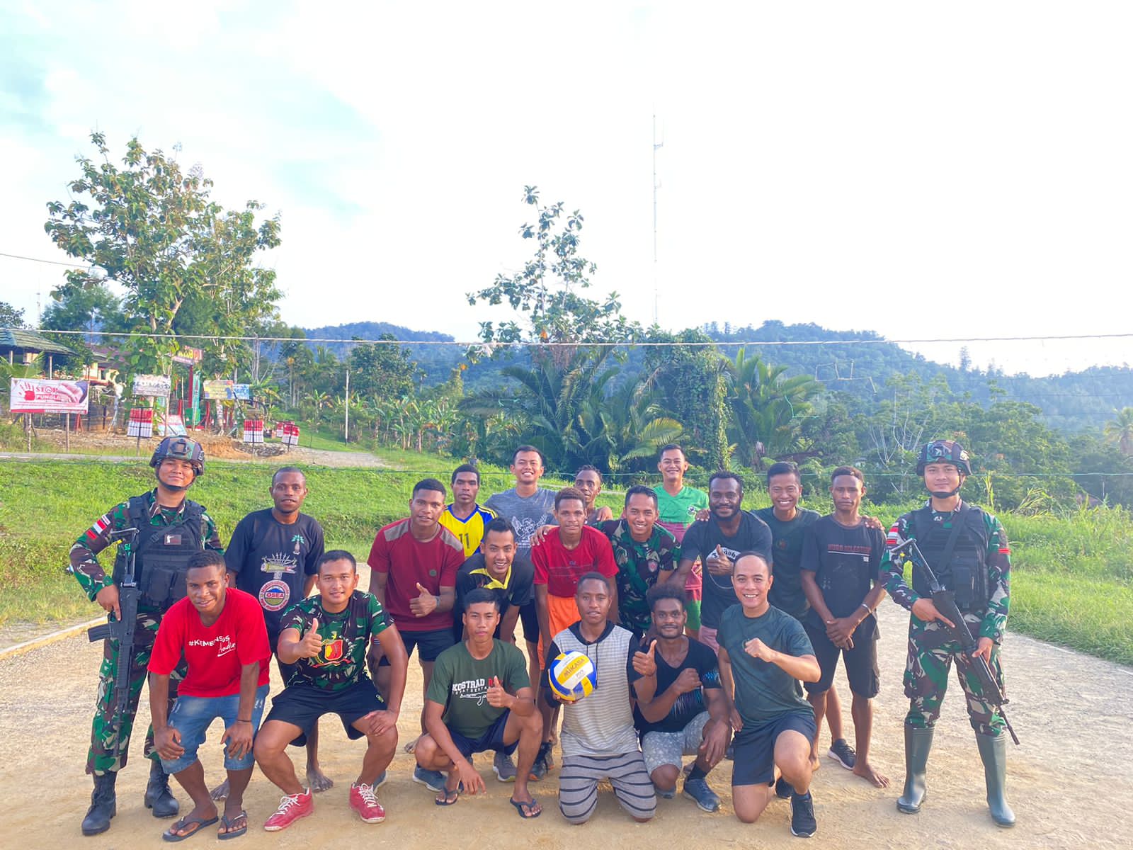 Mangrove.id| Satgas Yonif 143/TWEJ Pos Ubrub menjaga kebugaran sekaligus meningkatkan kebersamaan dengan masyarakat melalui olahraga Bola Voli bersama pemuda di kampung Amuaf, Distrik Web, Kabupaten Keerom, Provinsi Papua, Senin (31/10/2022).